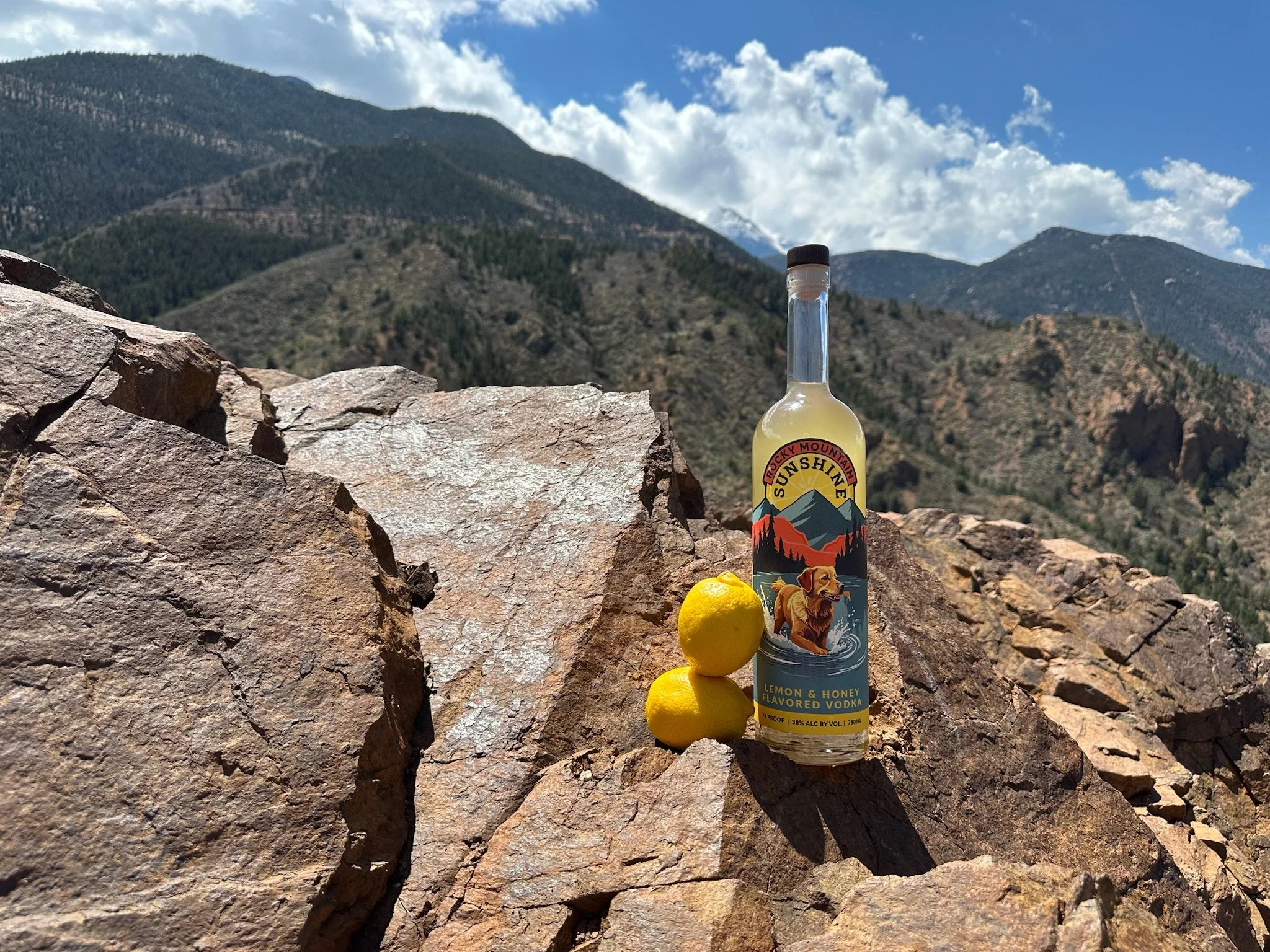 Rocky Mountain Sunshine, Sunshine Vodka, Citrus Vodka, 100% natural, all-natural, 100% organic, locally sourced ingredients, no micro-plastics, ethically sourced, veteran owned, Colorado vodka, Colorado made, American made, veteran-owned, social drinking, Colorado bars, Colorado hikes, Limoncello, citrus-infused vodka